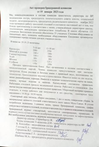 Акт проверки бракеражной комиссии от 19 января 2023 года