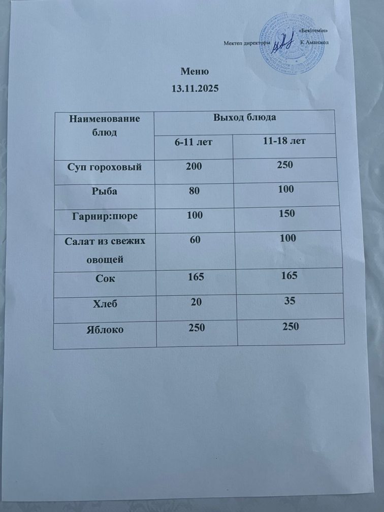 Ас мәзірі 13.11.2025